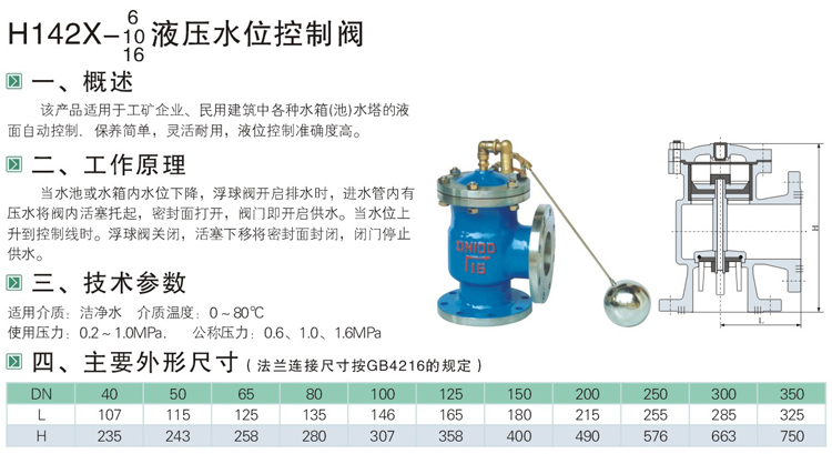 H142X液壓水位控制閥技術(shù)參數(shù)