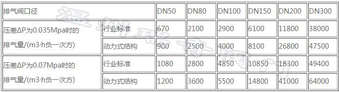 動(dòng)力式排氣閥的排氣量與行業(yè)上其他排氣閥標(biāo)準(zhǔn)規(guī)定值的比較(圖1)